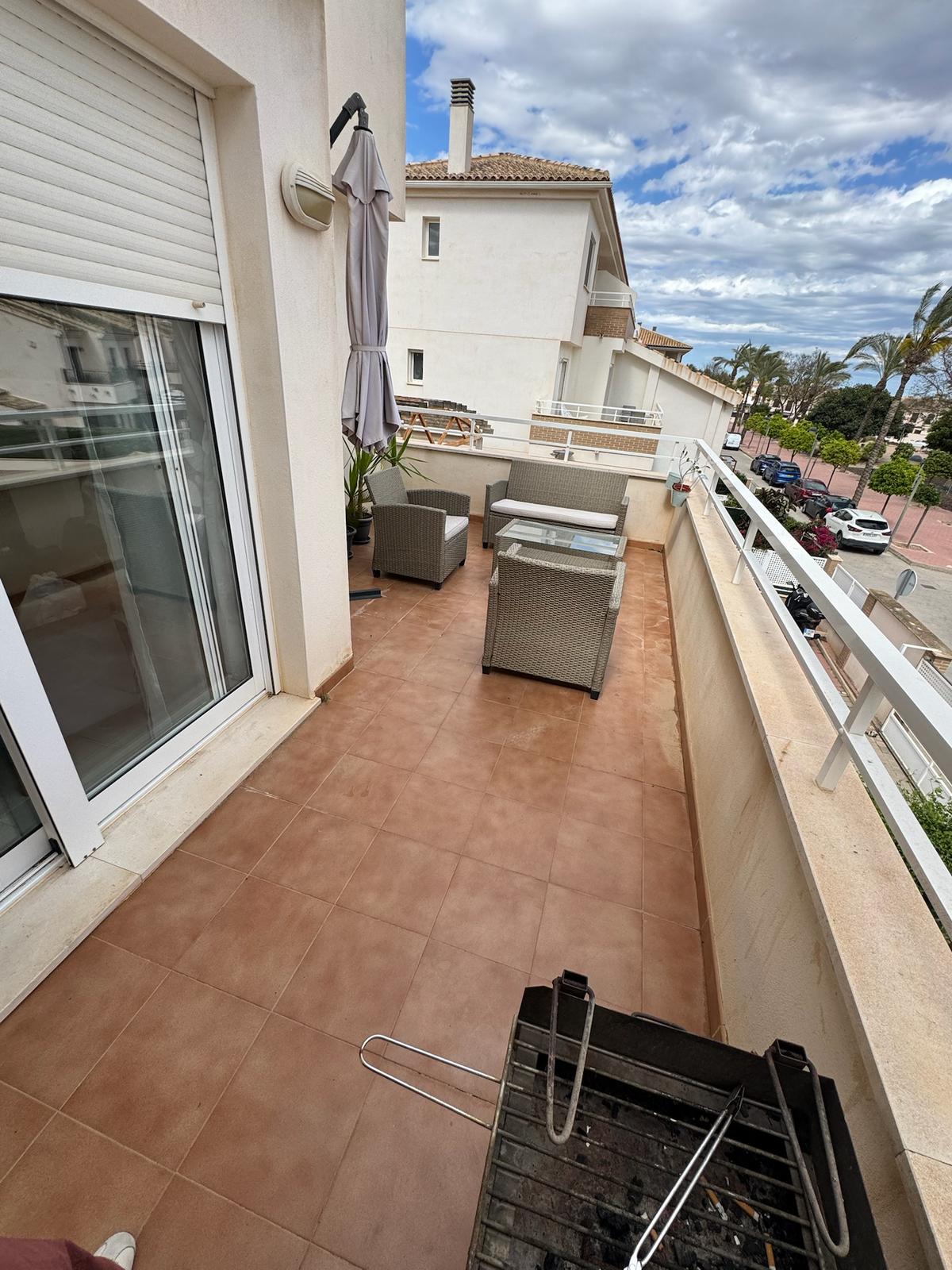 La propiedad cuenta con un acogedor salón comedor que invita a relajarse, tres amplios dormitorios y dos baños bien distribuidos. La cocina, completamente equipada, será el lugar ideal para preparar deliciosas comidas. Además, podrás disfrutar de una amplia terraza privada con mobiliario exterior, perfecta para esos momentos al aire libre.